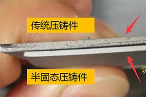 更好的致密性:以牌號(hào)AZ91D為例,原材料密度一般為1.80g/cm3 ,經(jīng)過(guò)熔化壓鑄成型后,半固態(tài)壓鑄工件密度能保證在1.79g/cm3 以上,基本沒(méi)沙孔,而傳統(tǒng)壓鑄只有1.70g/cm3左右。